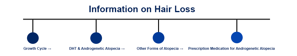 The Anagen phase lasts between 2-6 years, after which the follicle goes through a brief transition phase called Catagen, and enters Telogen, which lasts from 2-4 months. After the Telogen phase, the hair falls out naturally and is replaced, returning the hair to the Anagen phase. Some hair loss is a normal part of the hair growth cycle – on average, 50 – 100 hairs are lost from the scalp daily, but with Androgenetic alopecia as many as 200 hairs can be lost every day.