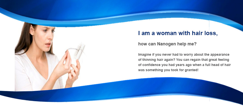Losing hair can be distressing, and you can feel very alone and isolated. This is particularly true for women. The good news is female response to treatment and maintenance programmes is much greater than that of Men and therefore no-one ever need know about your concern. Nanogen are here to help. Read our Hair Loss Information section if you would like more information about the causes of hair loss. Or let one of our two Guides below take you through some of the options avaialble, simply click on the one most relevant for you to get started.