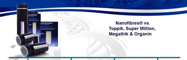 Hair fibres are such a well recommended hair camouflage product it is not surprising there are many different brands and imitators of Nanofibres. However Nanofibres offer patent-pending advantages over other products, even well known branded products like Toppik, that’s why many experts in the field of hair loss say that Nanofibres offer a much better result